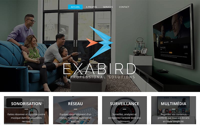 Exabird, fournisseur et installateur de matériel informatique, hi-fi et vidéo, a fait appel à nos services afin de leur créer leur logo, leur site internet et leurs cartes de visite. Cette dernière étant issue du secteur des nouvelles technologies, une identité moderne et épurée a été mise en place afin de refléter au mieux leur travail et leurs valeurs.