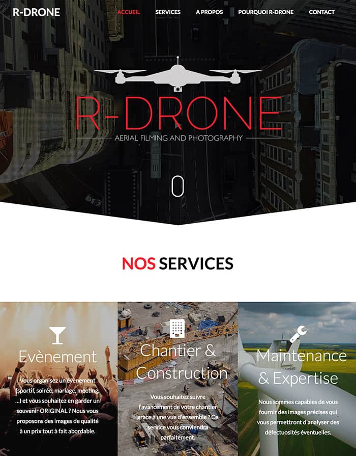 R-Drone est une entreprise qui propose des prises de vues aériennes professionnelles capturées par drone.
